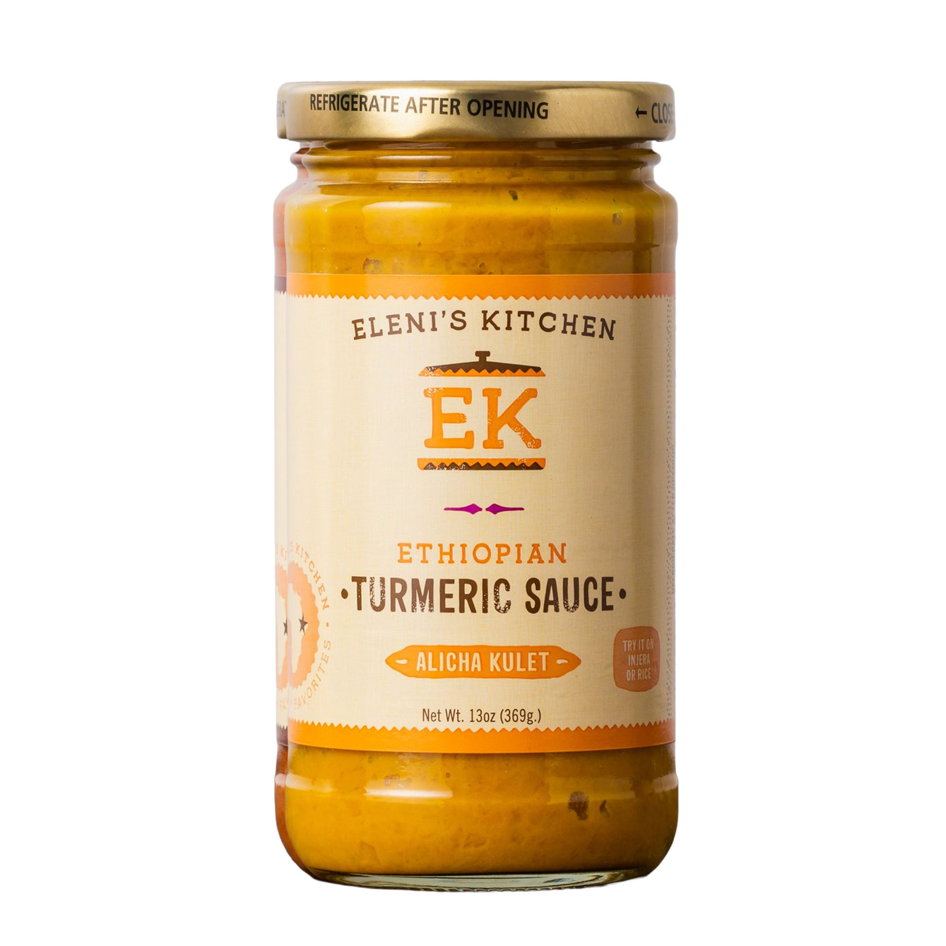 Eleni's Kitchen Turmeric Sauce, also known as Alicha Kulet in Ethiopia – is a sauce made of onions, organic extra-virgin olive oil, organic turmeric, garlic and ginger. Traditionally, Turmeric Sauce is used as a base for making mild stews (lentils, split peas and meat), and veggies dishes – Just Mix the Turmeric Sauce with lentils, meat or veggies, and some water; cook until the lentils veggies or meat are done; and add salt to taste. The Turmeric Sauce can also be a great addition to your soup, slow cooker or veggie stir-fry recipes.